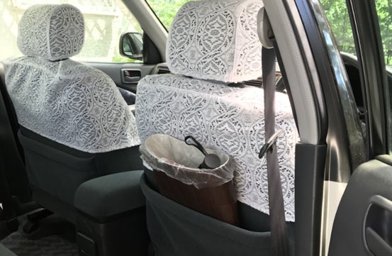 - ●車の中の傘入れ、雨が降っている時に狭い車の中での濡れた傘入れるのに凄い良いと思います。