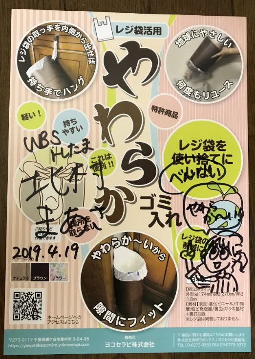 2019 年4 月 19 日:テレビ東京 WBS (ワールドビジネスサテライト)の トレンドたまご にて「やわらかゴミ入れ」が紹介されました。