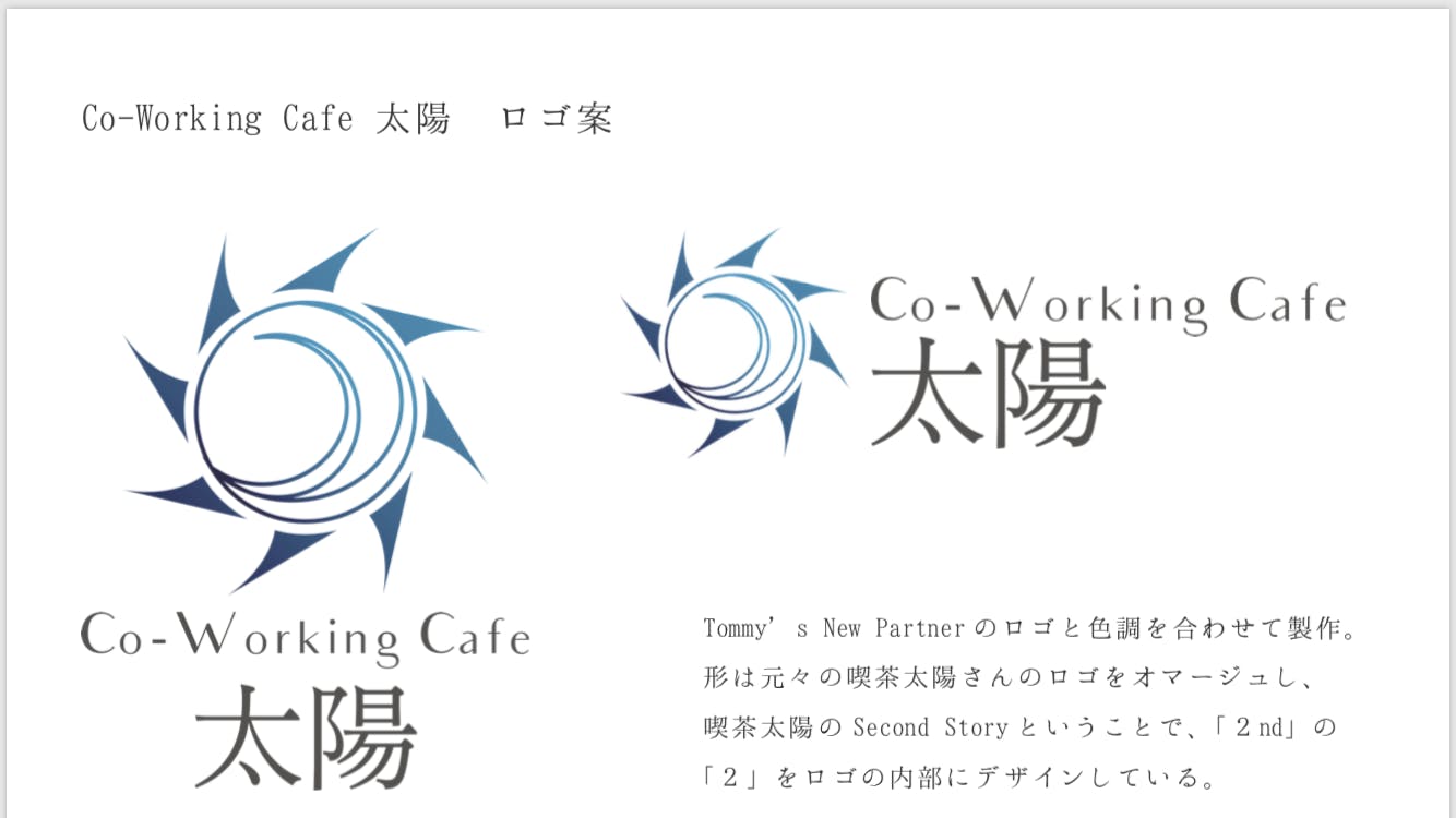 「太陽」「Co-Working Cafe」の字は書道家の名武さんに書いていただきました!