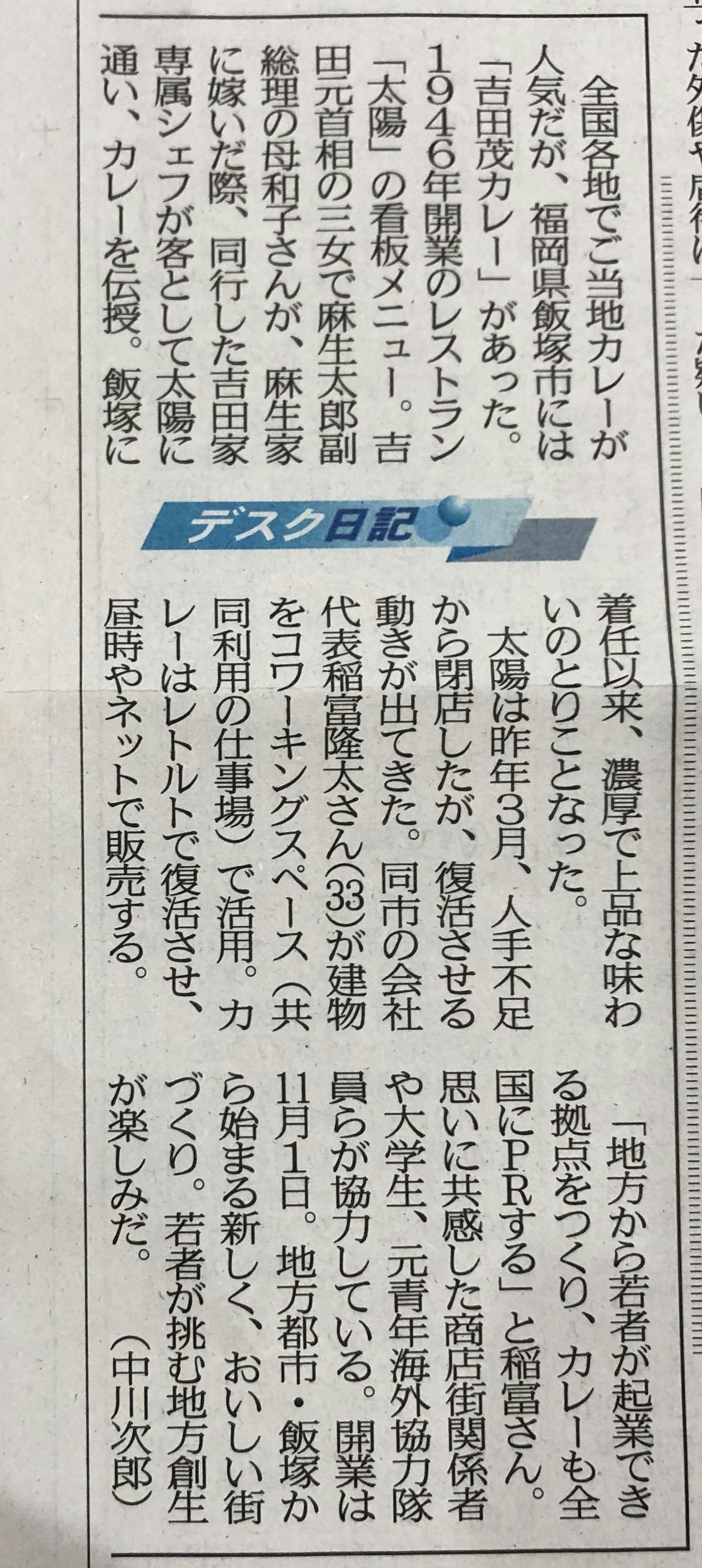 本日西日本新聞様にまたコワーキングカフェ太陽の記事が出ました!