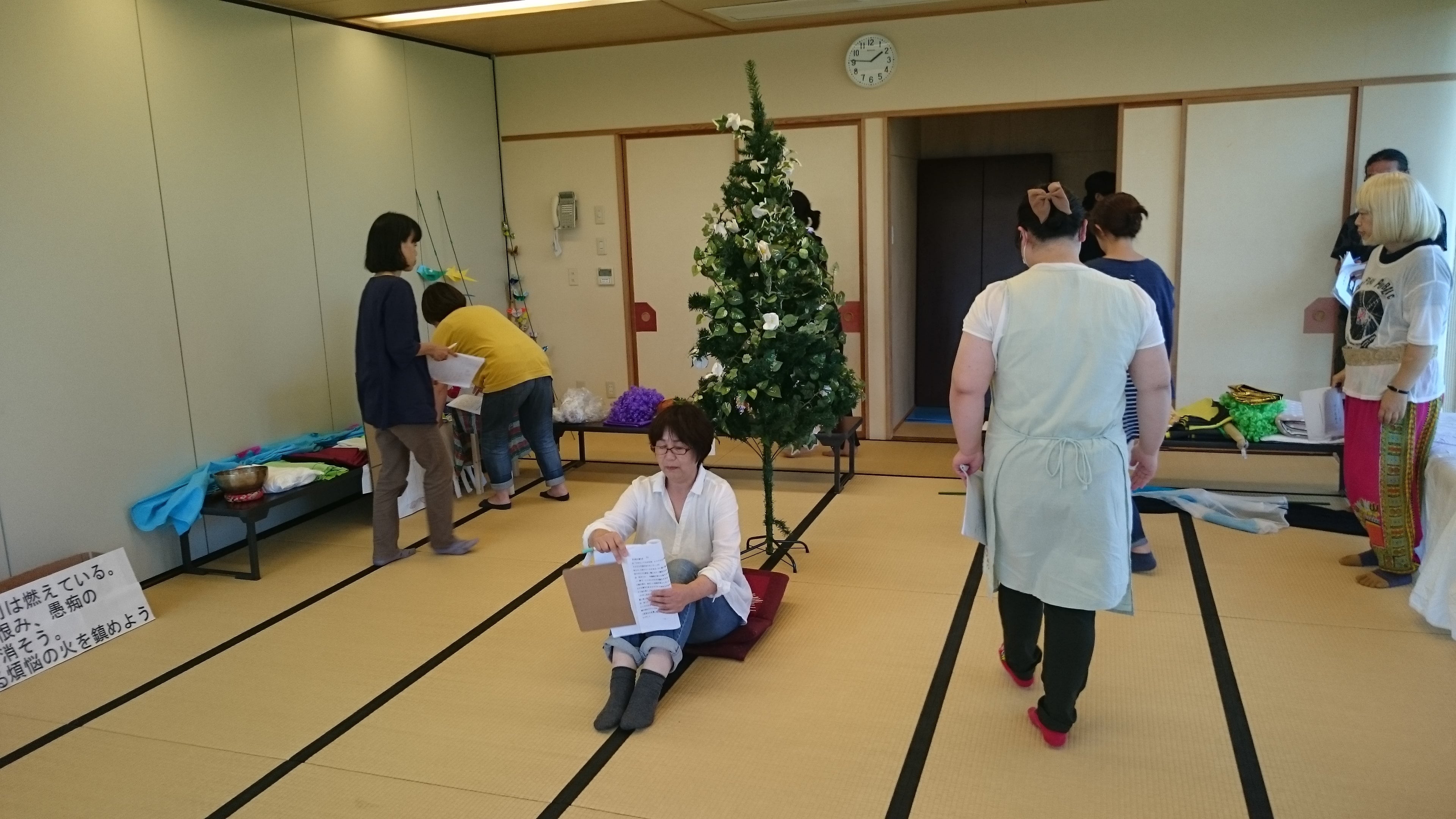 皆さま 応援ありがとうございます!なんとも黄色い布が眩しい!5人の弟子の練習風景。謎の人物を囲んで真剣に打ち合わせ中。お釈迦様に出会い5人の弟子たちが変わっていく様は見所のひとつ。是非ともおススメです!劇団 青い地球 『お釈迦様の一生』緑に囲まれたステージにて。心よりお待ちしています。(黒子 K子)〜11/3(日) 場所:水戸市有賀町 アスパイヤ〜とんぼ谷のアレッポ市場HPとんぼ谷のアレッポ市場Facebookとんぼ谷のアレッポ市場アメブロ