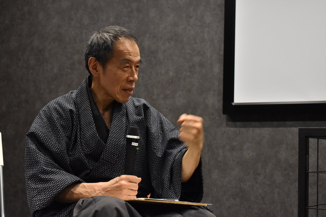 緊張がほぐれたのか、笑顔を見せる甲野善紀先生。