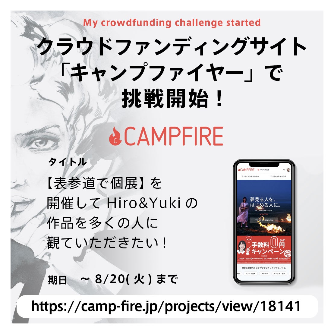 8/2より 人生はじめてのクラウドファンディングに挑戦開始!インスタグラムでもPR中