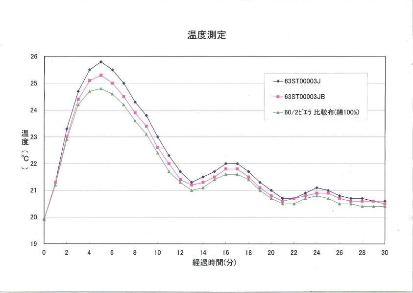 暖かさを測る指標として吸湿発熱性能というのがあります。実験で用いた生地は織物ですが、糸の性質の比較になりますのでご紹介します。