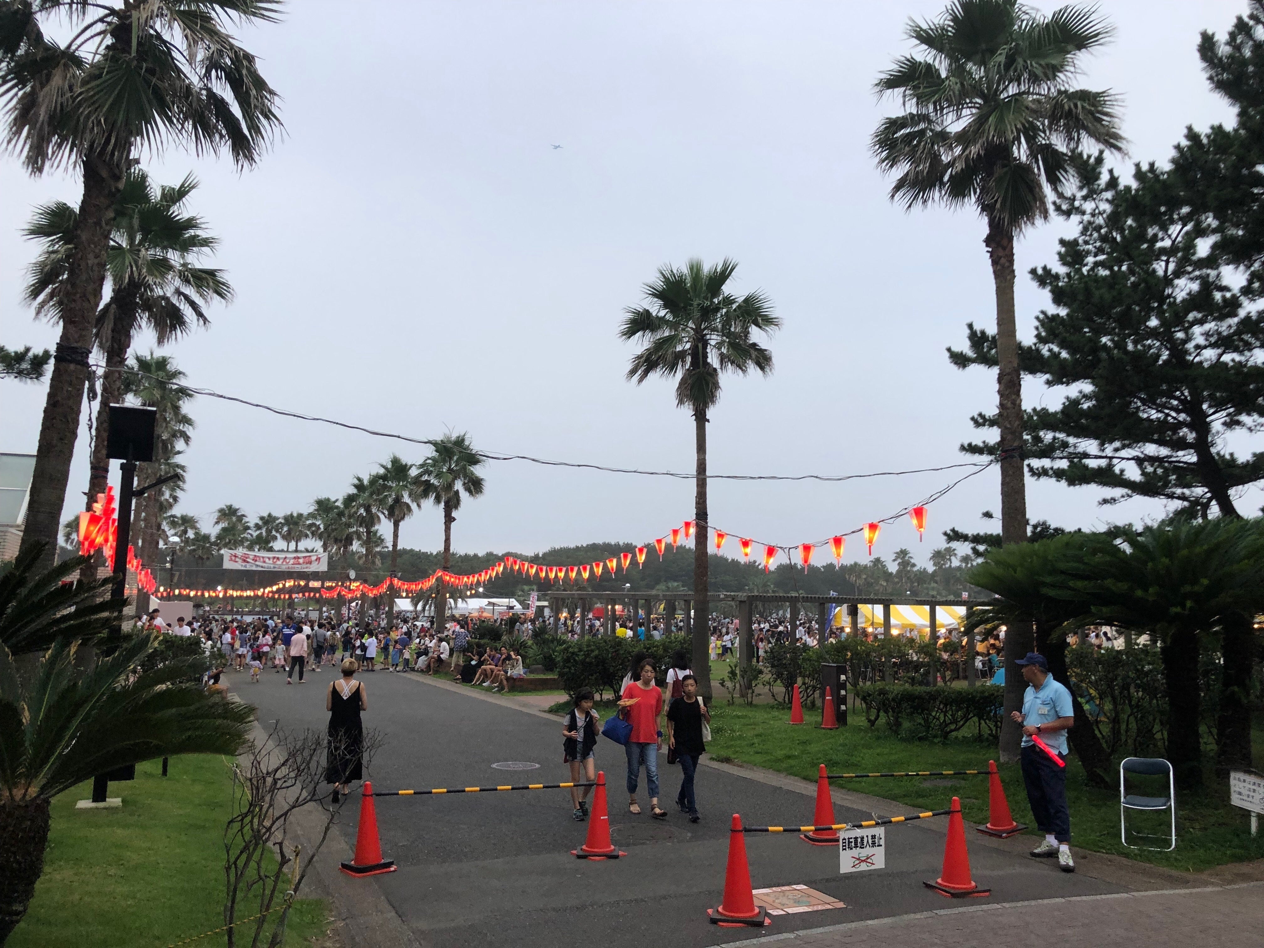 会場となる県立辻堂海浜公園は、一面芝生に包まれたなだらかな丘陵と異国を思わせるヤシの木が
