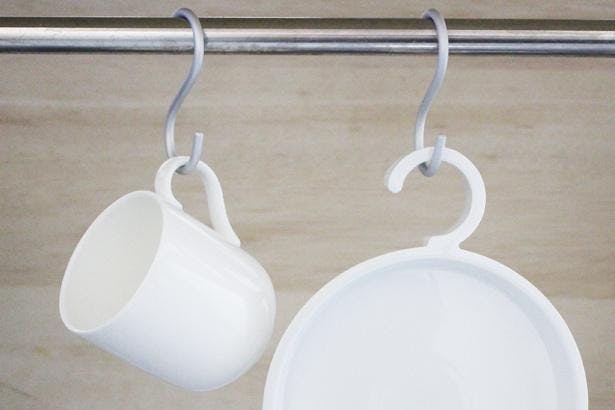 前面にマグカップなどが、かかっていてる場合でもハンガーの形なので、
