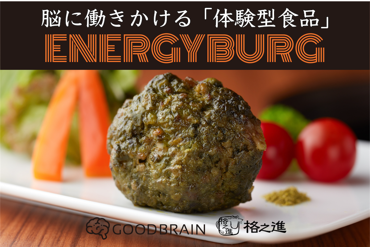 「ハンバーグ」と聞くとワクワクしませんか?ハンバーグが持つ、このワクワク感は、大人も子供も共通の不思議な魅力です。このハンバーグに、脳に働きかける天然成分を加え、化学的にも気分的にも働くみんなを元気にするハンバーグ、それが「エナジーバーグ」です。エナジードリンクのように健康に対する不安を感じることなく、オフィスに家に常備して、ここぞというときのサポート食品としても役立ちそうです。