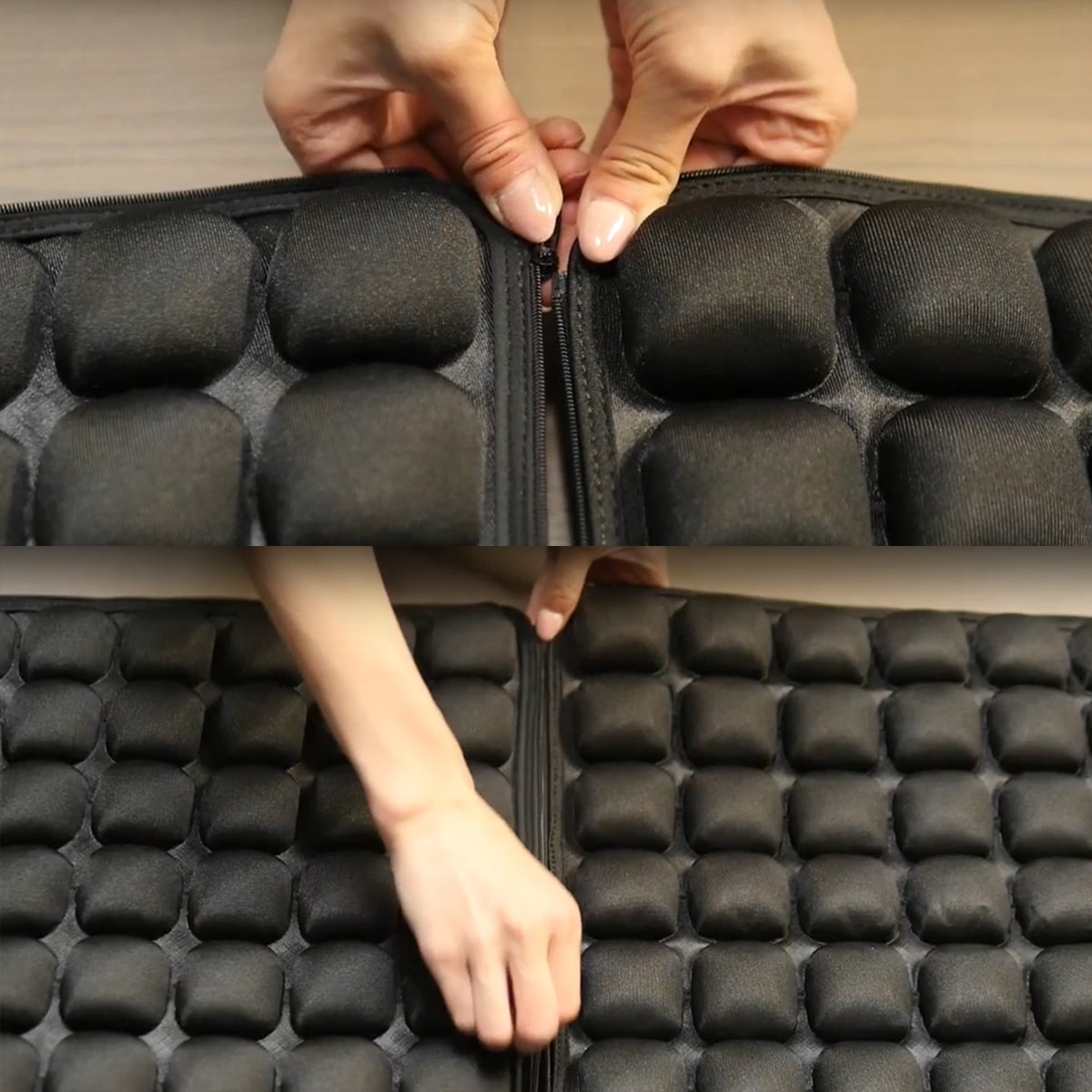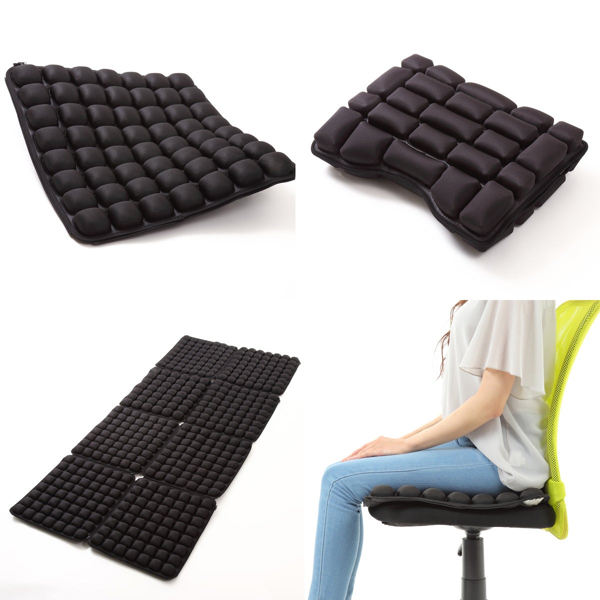 ドクターエアセル3Dクッションは、ファスナー付きだからつなぎ合わせて自由自在に大きさを変えられます。