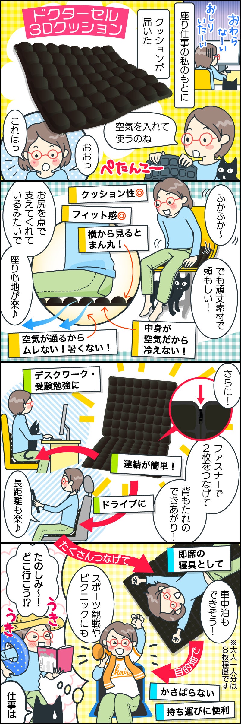 本製品は多くの方に高評価をいただいておりますドクターエアセルシリーズのクッション版です。