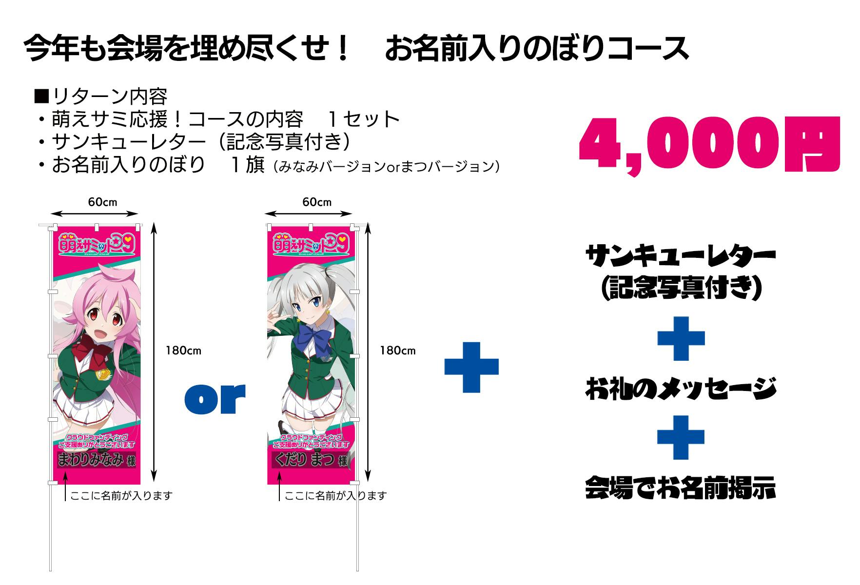 のぼりで埋め尽くされるのは当然として、萌えサミットをパワーアップさせて、参加者さんにもっともっと楽しんでいただけるような形でお返しが出来ればと考えていまつ。