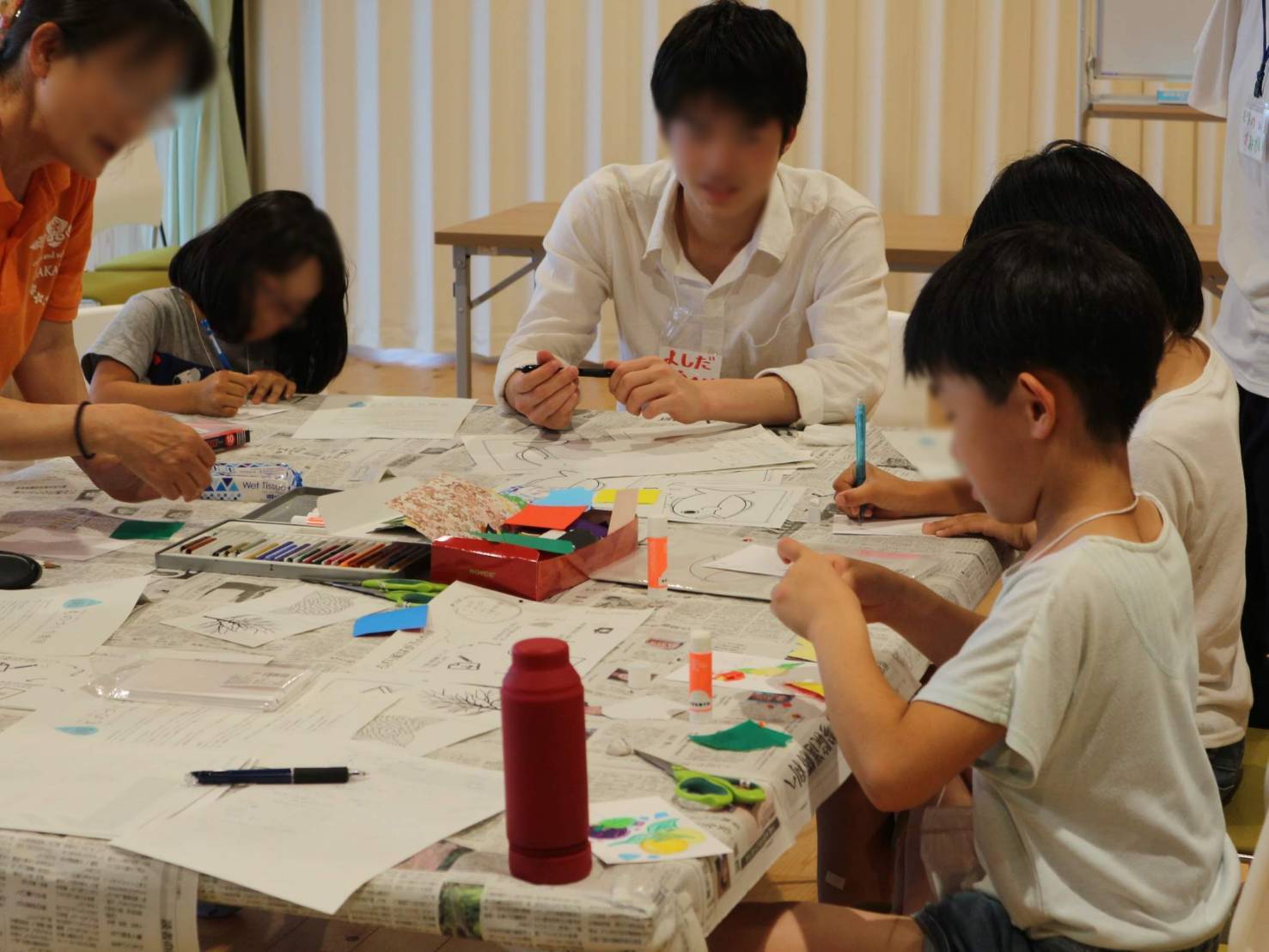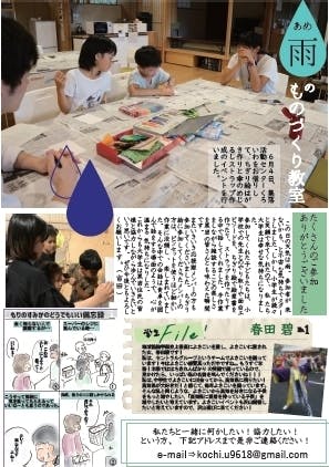 具体的には、新聞紙と古布を集め、新聞紙プールや新聞紙ハウス、手作り衣服などを作ったり、休校になった学校を使って黒板いっぱいに絵をかいたり、お家や学校では体験することのできない時間を提供したいと考えています。