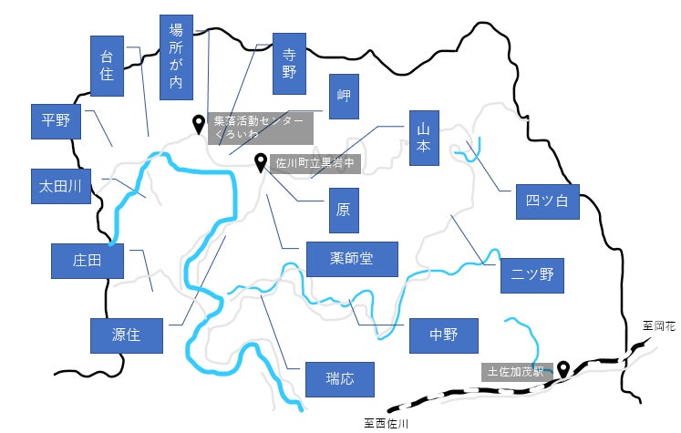 佐川町黒岩地区は高知市内から車で約1時間の地域です。