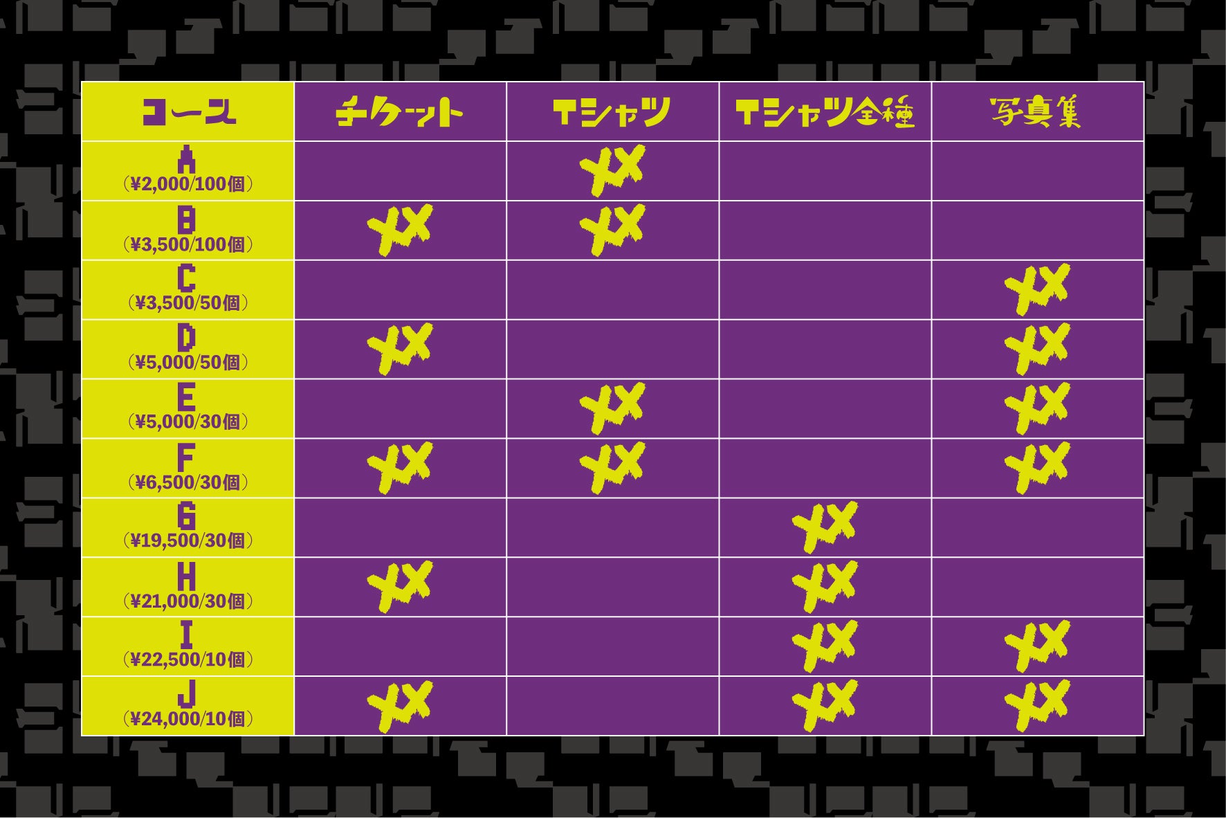 *「選べるライヴT シャツ」・「購入者クレジット入りライヴ写真集」はイベント終了後、約3ヶ月後に送付予定となっております