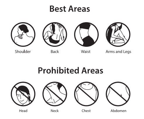 ご使用時は、フラットな肌に密着してください。例えば、肩や背中、腰、太ももなど