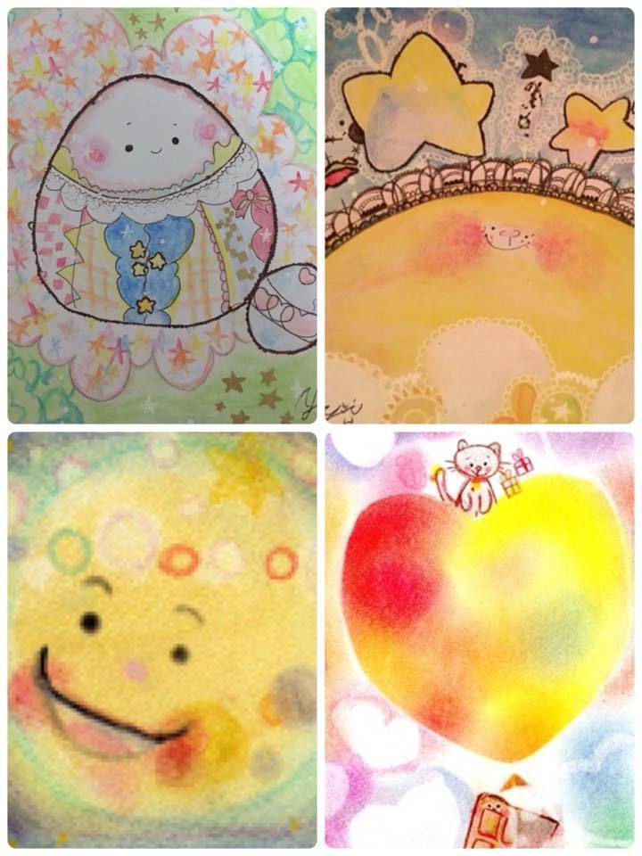 色鉛筆、パステル、アクリル絵の具等、使用する画材を一種類に限ることなく、ほっこり癒される作品を目指しています。