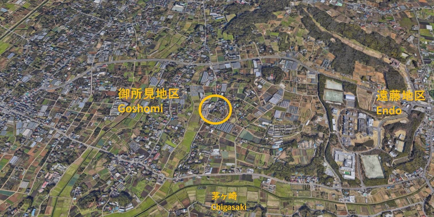 今ではその名残は石碑に残すばかりですが、古民家は市内最多の農業生産量を有する近郊農業の広がる市街化調整区域の農地の真ん中にあります。この辺りでは、米、野菜、果樹、花卉、植木、畜産物等、多様な品目の生産風景を見ることができます。