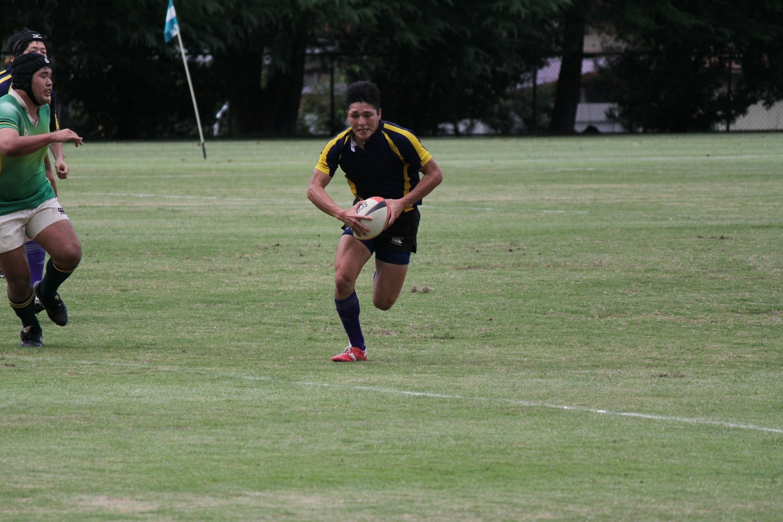ボールを持ったまま追い詰められ捕まるか否かの刹那、トライを演出する神業パス
