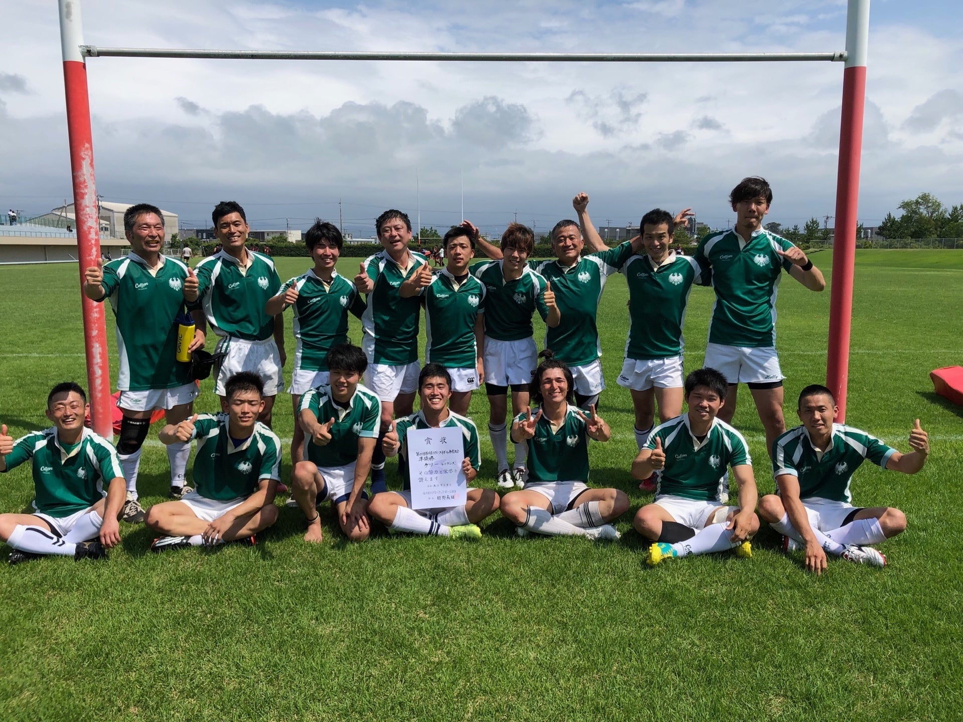 2019/10/21 13:36こんにちは! 昨日の南ア戦をご覧になった方はいらっしゃいますか??僕は残念ながら試合結果のみでしたが、前半はかなりの善戦だったようですね。 もう少し長く、日本代表の勇姿も見たかったのですが、やはり世界の壁を前に敵わず残念に感じます。 さて、一方で僕が所属する六甲ファイテングブルは京都吉祥院公園グラウンドにて近畿リーグ2戦目がありました。相手は京都アパッチ、格下の相手ですが勢いがあり、また先の芦屋クラブ戦の課題を抱えた僕たちにとっては重要な一戦でした。 結果は80-0、反省を活かし課題をいい形で克服できたと思います。 この試合僕は後半15分頃から、ポジションはNo.8での出場でした。 本職で出られること、そして初ゲームであることとで興奮と不安が冷めやらぬままの試合は始まりました(笑) それでも5分後、ラインアウトモールから味方6.7人に支えられる形で初トライを獲得しました! さらにその5分後、味方が相手ゴール前5mまで運んだボールを僕が拾い、タックラー2人を弾きながら2トライ目を叩きだしました。 今までトライを上げること自体珍しく、まして初ゲームでのトライは本当に心に残るものでした!! その喜びとは別に、この25分で僕個人に上を臨むための課題も多くありました。 チームに貢献するために、また夢を叶えんがためにも新しい知識を吸収しつつ課題を修正していこうと思います。 このジャージは僕の始まりの番号になります。この気持ち、決意とともに忘れないように今日からまた努力します。まもなくプロジェクト期間は終わってしまいますが、引き続き応援よろしくお願いします! もっと見る初!公式戦ベンチ入り!