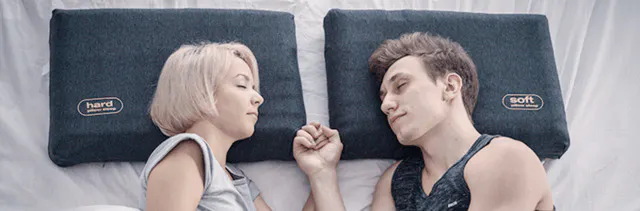 らかい枕がお好みの方はグレーの「ソフト」面を、硬めがお好みの方はピンクの「ハード」面を使用することができます。