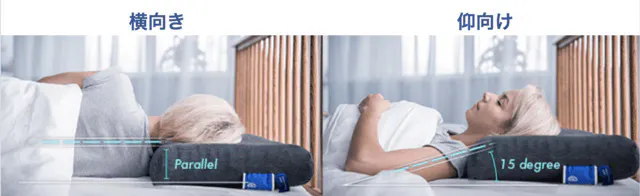 重みのある頭部分を沈みこみ、首や肩など重みに合わせて約15度程度など傾きの角度が変化します。右肩だけ下がってしまうなどの各自の寝相にも合わせてくれるため抜群のフィット感を実現。