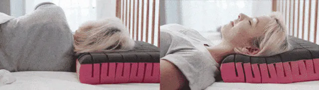 横向き時は肩の高さが発生するため頭の体圧が少なくなるため、The Cubesはその重みに合わせて高さをキープします。首と頭の隙間なくしてカラダへの負担を軽減。