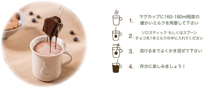 ですが、安心してください!作り方はとても簡単です。ホットチョコレート用に作られた専用チョコレートスティックをホットミルクに混ぜるだけで簡単に出来上がります。