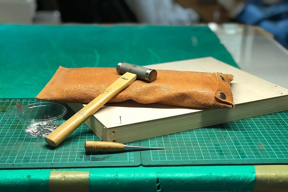 そして、重りをのせて動かないようにして釘打ちすれば完成です。