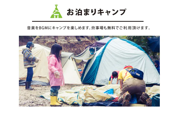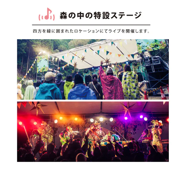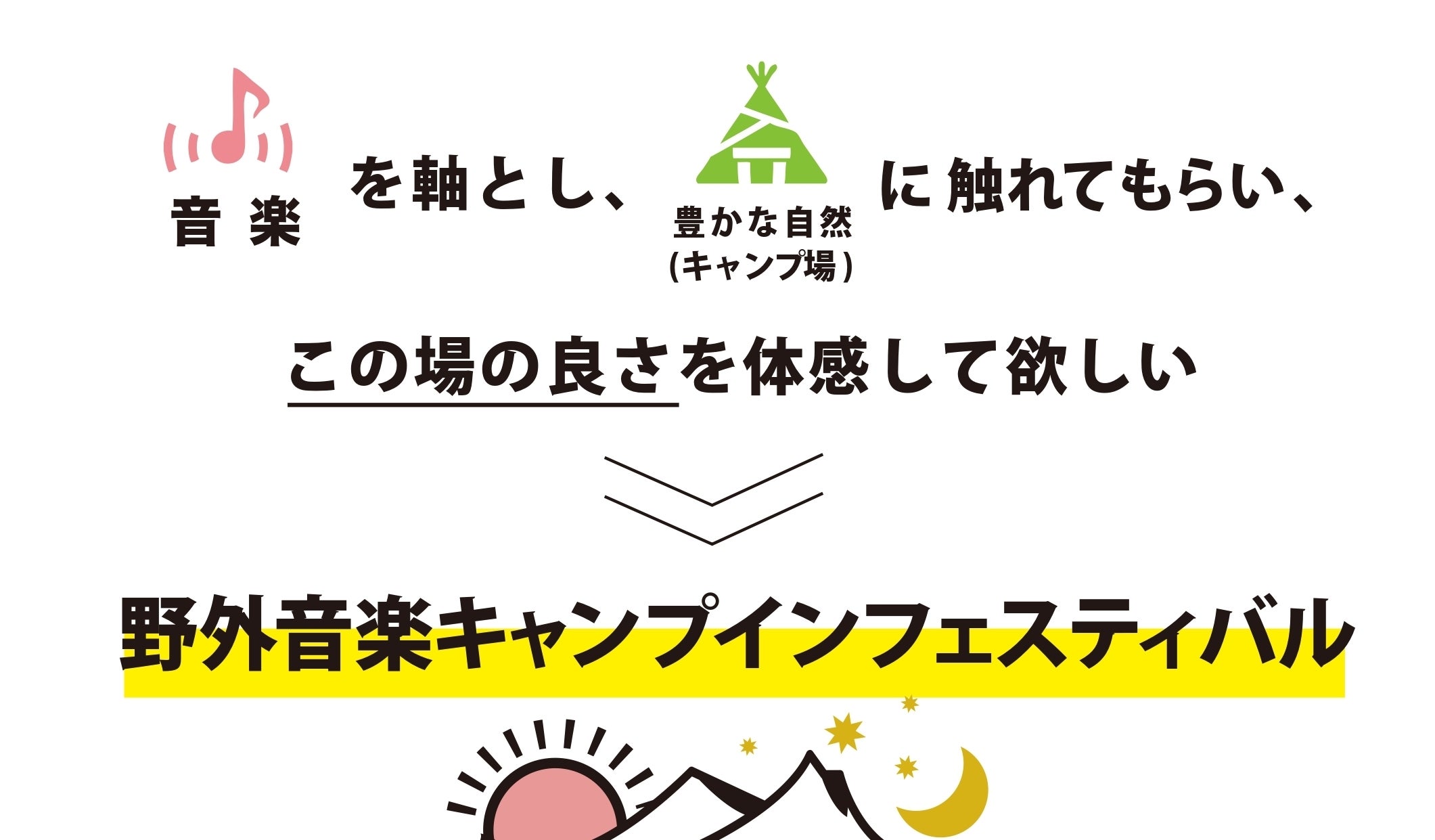 音楽を軸とし、豊かな自然(キャンプ場)に触れてもらい、この場の良さを体感して欲しいと思い「野外音楽キャンプインフェスティバル」という形態にしました。