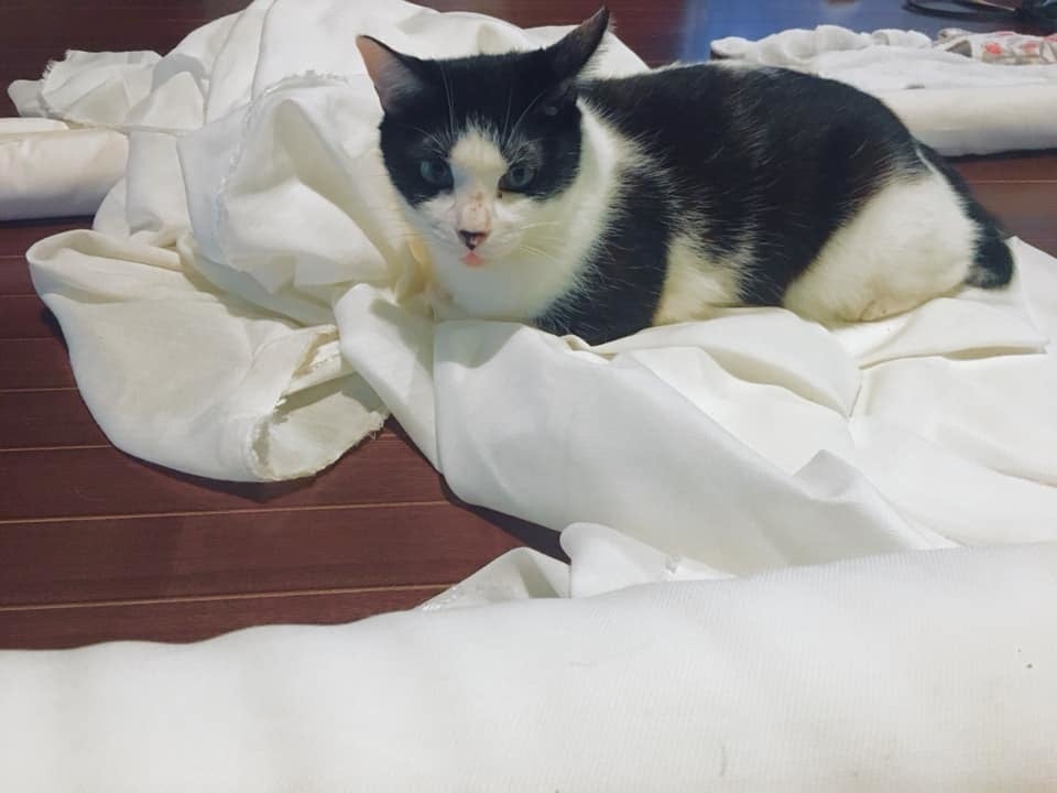 (どうやっても動いてくれなかったのもあり、飼い猫が乗った部分の布は、めでたく猫ベットになりました)