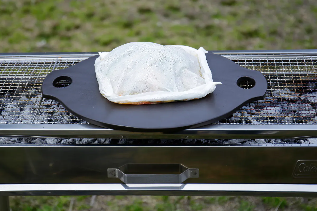 ・平らなデザインのため、肉汁や水分が流れ落ちる可能性があります。滴っても問題のない屋外でご使用ください。