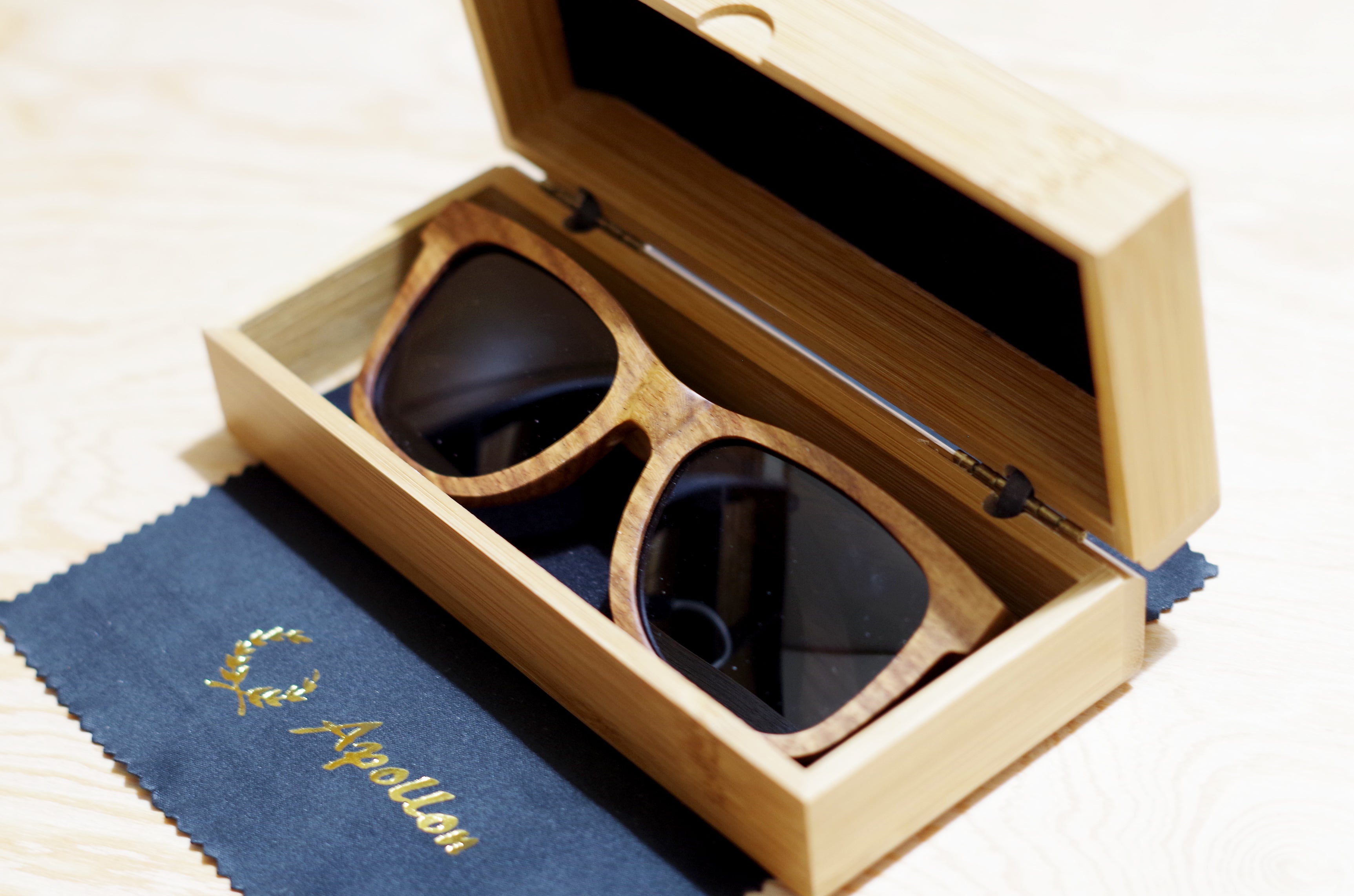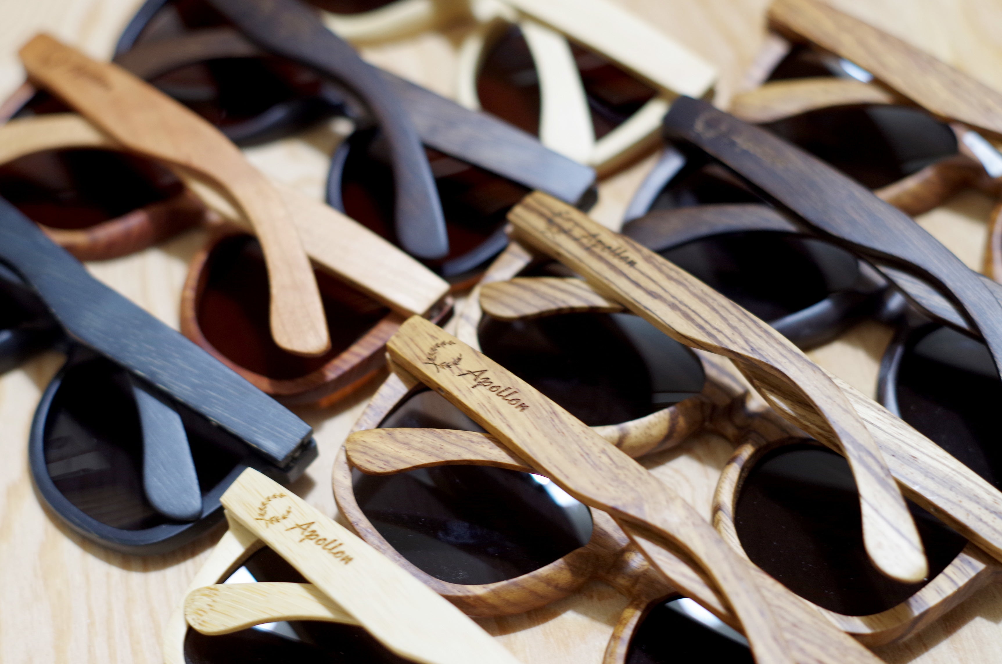 「僕らで愛着の生まれる商品をつくる」という目的のもと、その最初の商品がこの天然木で造った心地よいサングラス「Apollon」です。