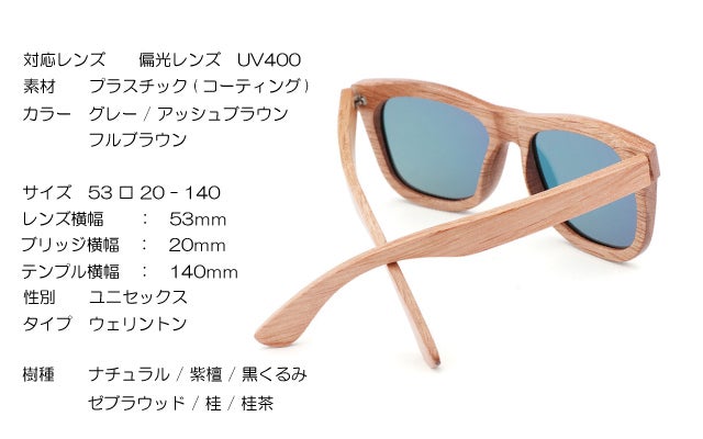 素材となる木材によって出来上がるサングラスは表情が1つ1つ異なります。