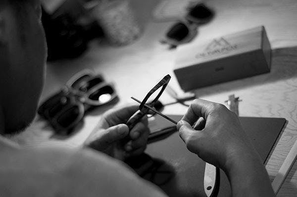 サングラスに使用する木材のリサーチからデザイン、組み立て、検品、販売にいたるまで一貫して僕らで行っています。
