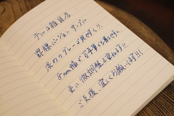 2017/02/19 18:22テルコ雑貨店のクロリノート、罫線バージョンの印刷サンプルを重ねています! プロジェクトを立ち上げて、約4日ほど。 ご支援の声は少しずつですが集まり、さらに広がっていけばと願っています。 まだまだ達成率は16パーセントほど、日々頑張っていきたいと思います。 そんな中ですが、達成した際に作り上げる罫線バージョンの罫線印刷のサンプルは、日々進行しています。 「どれくらいのグレーの罫線が、見やすく目に優しく、それでいて筆記した後に邪魔にならないか」 「どのくらいの太さが、文字を書いた時とのバランスが良いか」 「万年筆でも書きやすい8mm幅にしつつ、上下の空白の塩梅はこれでいいか」 などなど、基本的な設計は決まっていつつも、より良い罫線バージョンにできないものかと試行錯誤しています。 きっと、素敵な罫線バージョンが出来上がります。 これはサンプルなので表紙も何もなく、中身だけの状態で書いておりますが、ここに世界各国の素材の表紙、あるいは厳選した発色素敵な皮革の表紙が、しっかりしたハードカバーであしらわれます。 もちろん、表紙だけでなく見返しや花布、栞もこだわり他のどこにもない素敵なノートを生み出していきたいと思います。 ぜひ、引き続きの拡散とご支援のほど、お願い申し上げます!! プロジェクトページはこちらからもご覧いただけます。ぜひご協力をお願い申し上げます! https://camp-fire.jp/projects/view/18222 テルコ雑貨店 もっと見る