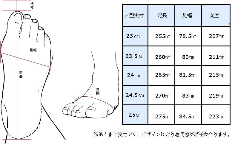 サイズは、23cm~25cmのサイズ、詳しくはサイズ表をご覧ください。