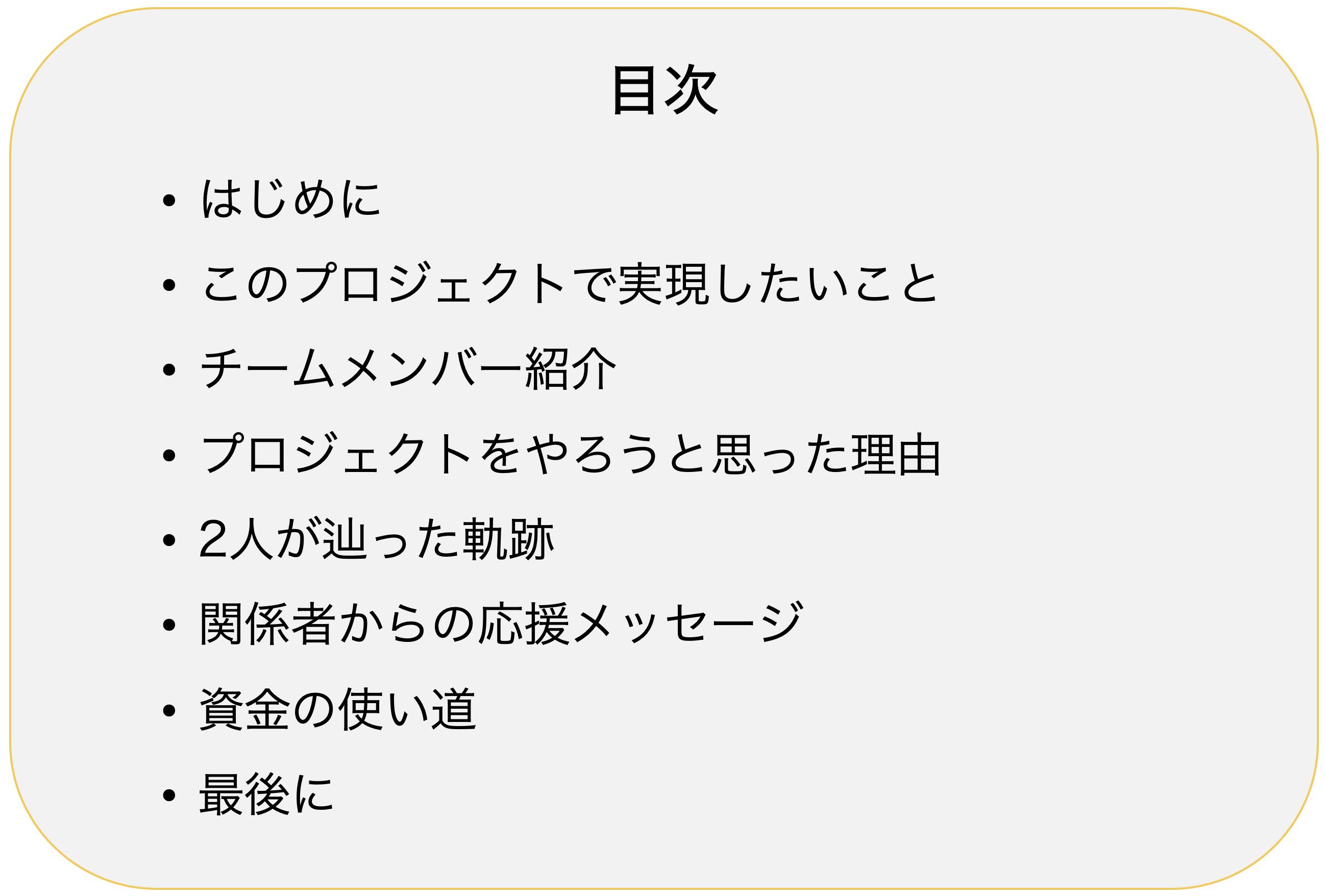 川畑君の話を聞くうちにその熱意と人間性に感化され、彼らならやり遂げてくれるのではないかと思い支援させて頂きました。私と同じ気持ちで支援した方も多々いらっしゃると思います。