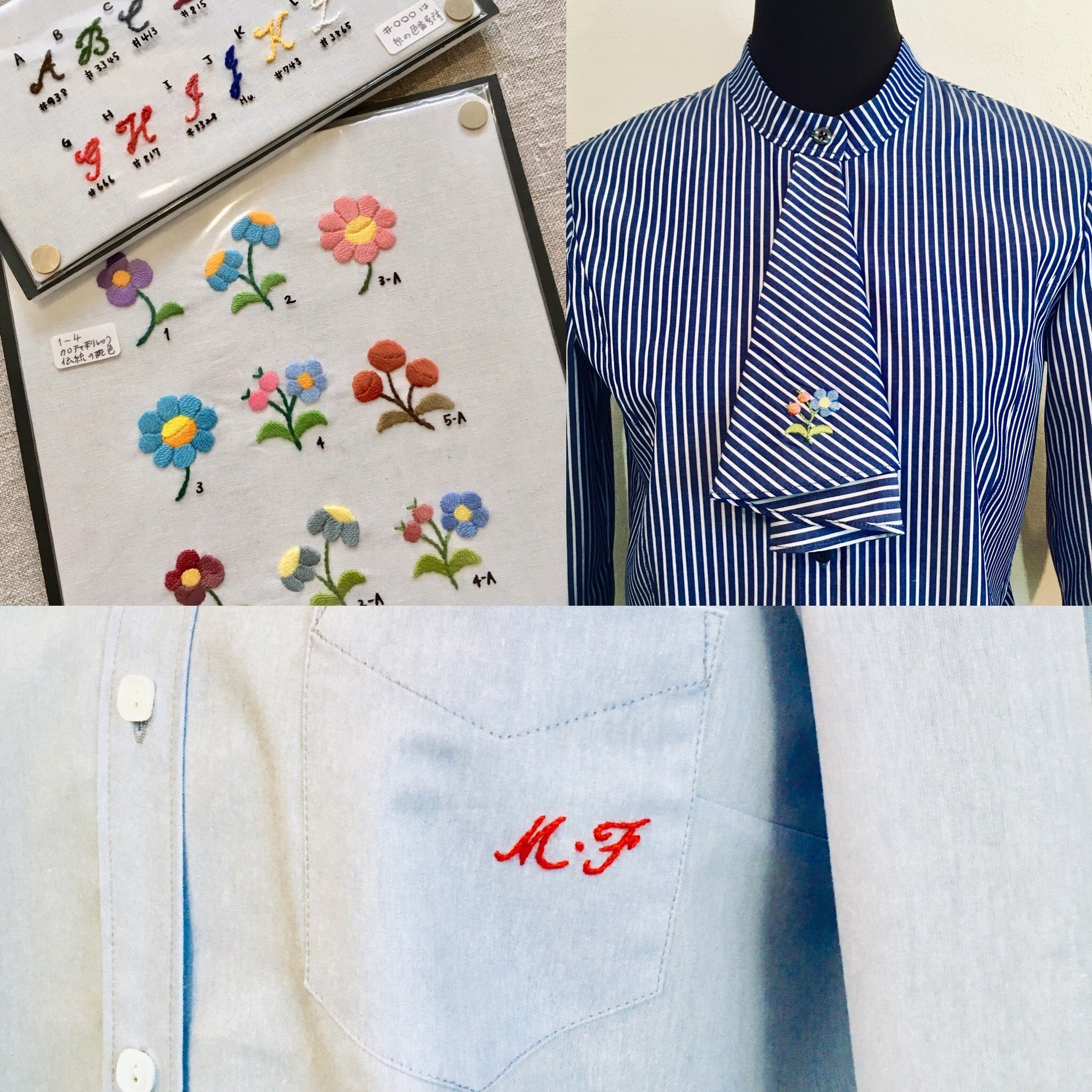 手刺繍ならではの風合いがシャツのオリジナリティを一層高めます。
