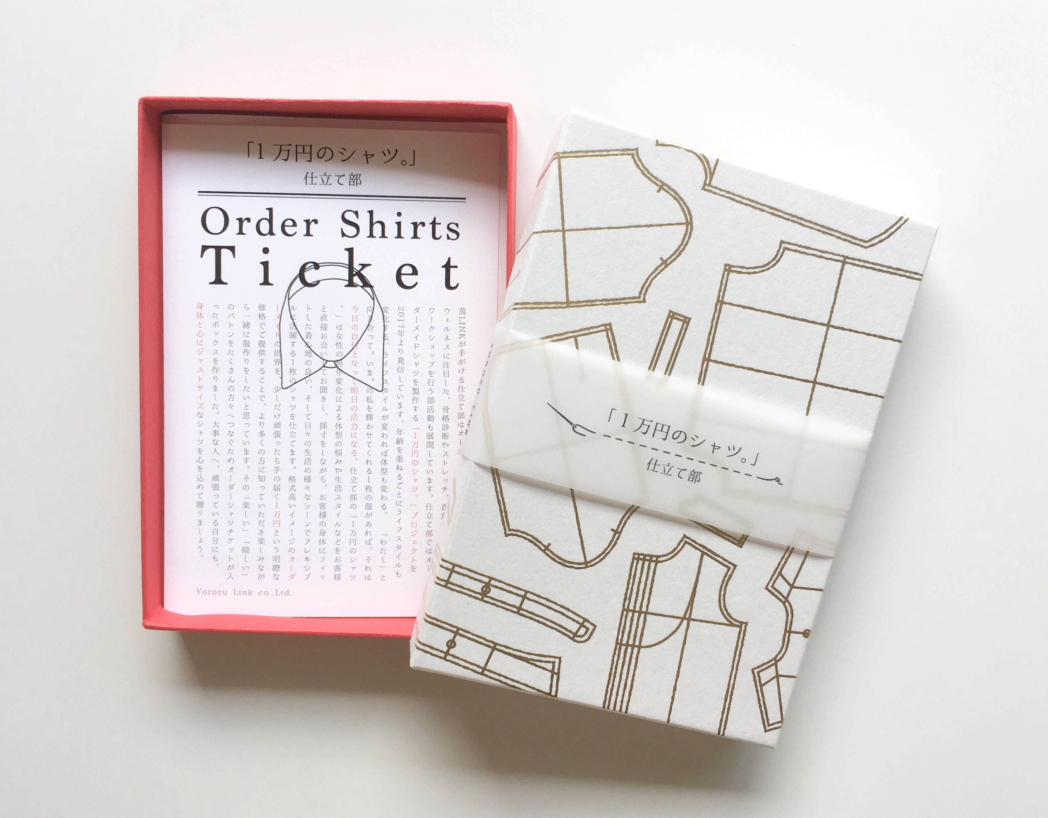 「1万円のシャツ。」は毎日を頑張る女性たちをアップデートするオーダーメイドシャツ。体型の悩みもナンノソノ! 身体に心にジャストサイズなオーダーシャツが作れるギフトチケットをボックスに詰め込みました。