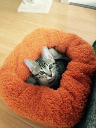 子猫のルーテーズ。生後間もなく公園に捨てられていました。