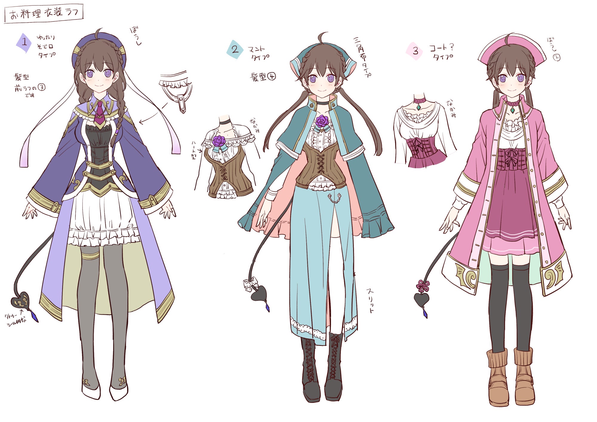 ※ 茶髪・銀髪・羽あり、なし・尻尾あり、なし。を衣装の中から選んでください。