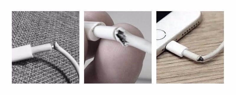 断線したところのみをカットし、再使用できるケーブルを企画するにあたって、断線しやすいところはやはり、両端子のすぐ下であることが分かりました。