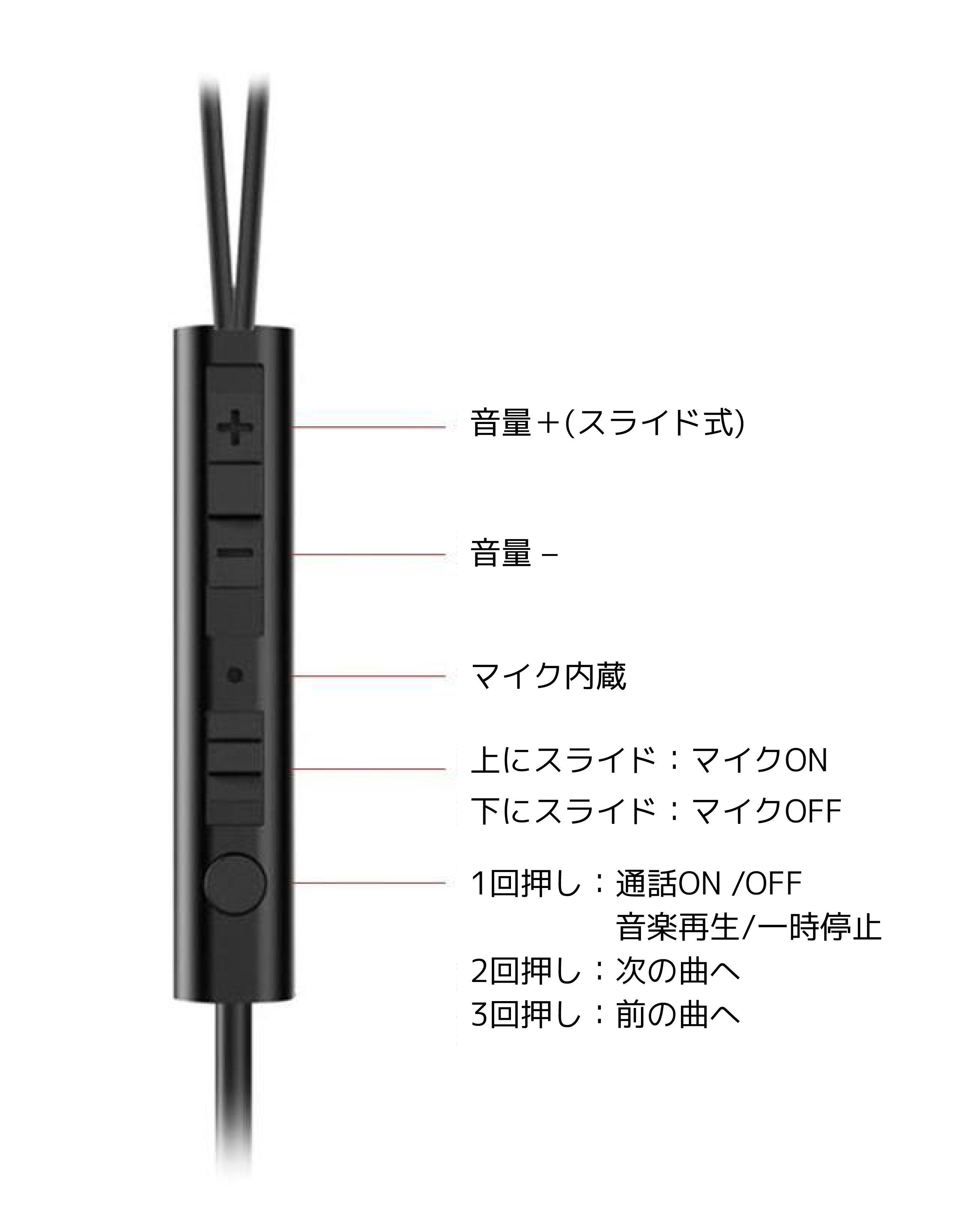 *基本的なコントロールボタンに内蔵されたマイク+プラグ型ブームマイク。