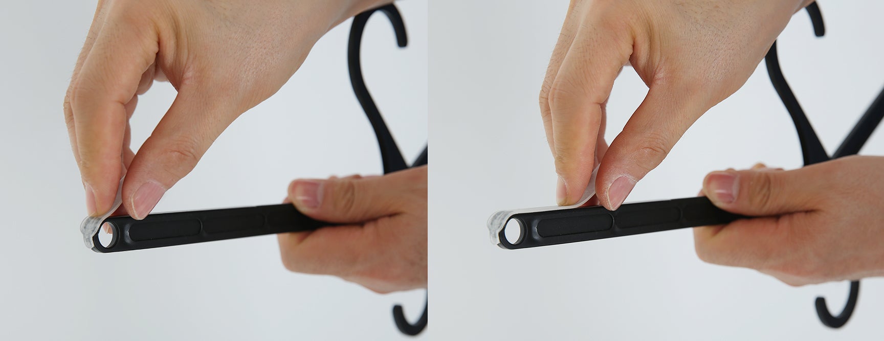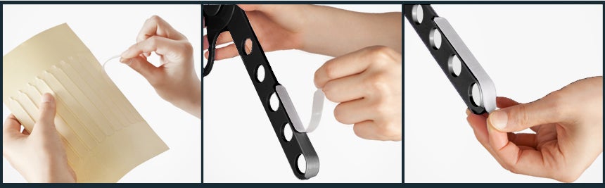 A:ウイングハンガーは翼にノンスリップ機能ができるよう、半透明のシリコンパッドを提供しています。必要に応じて、上面の翼に貼り付けてお使ってください。( シリコンの裏に頑丈なテープが貼ってあり、簡単に貼り付けることができます。)