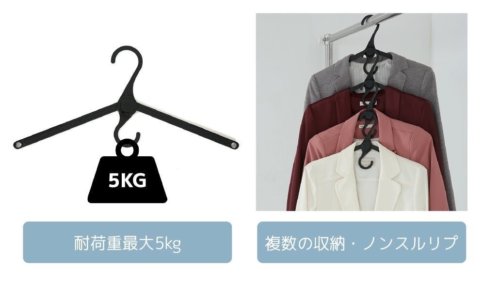 優れた耐久性にシャツや秋用ジャケットなど垂直に掛けても丈夫です。*実際の使用環境での同じ効果を保証するものではありません。