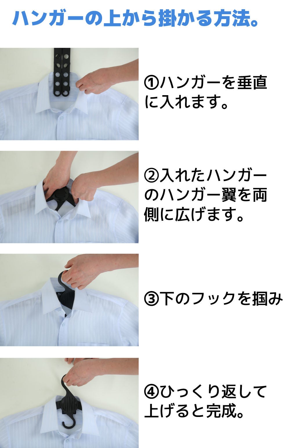 ⒈ ハンガー上下部にフック