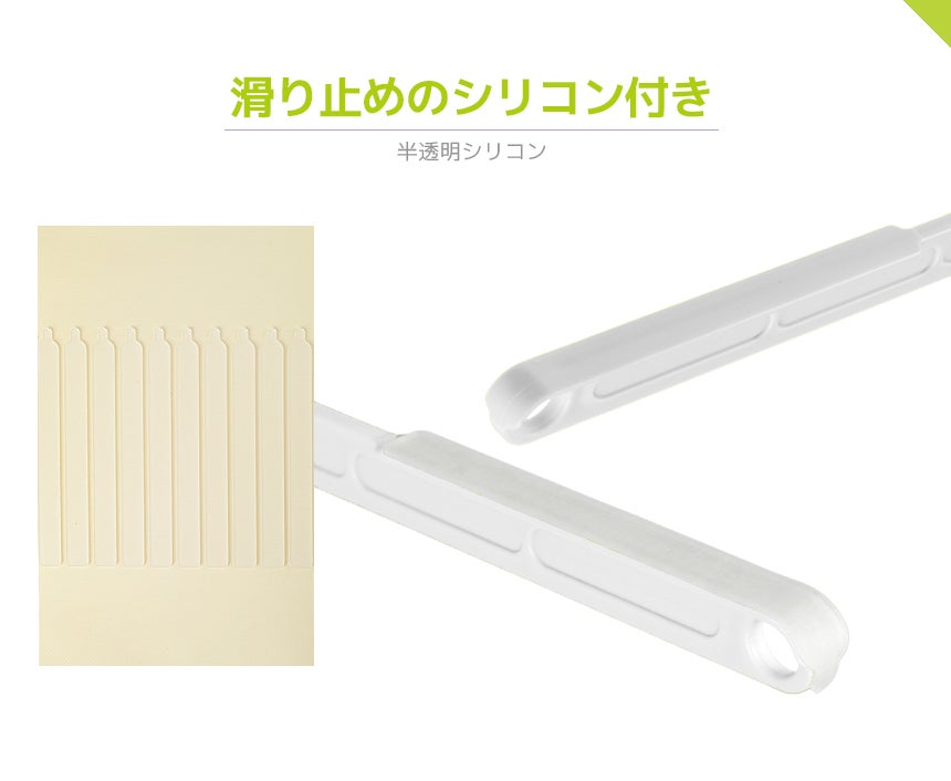 ノンスリップ仕様でずり落ちない、よじれない。(ノンスリップシリコンは必要な分だけハンガーに直接貼り付けて使ってください。)