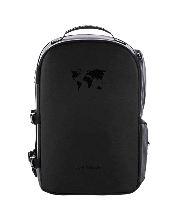 エムビチオネムのシグネチャデザイン“世界地図のグラフィック”を入れ、どこでも自然に溶け込むようなブラック色にコーティング処理を加えてマットな感じを演出しました。