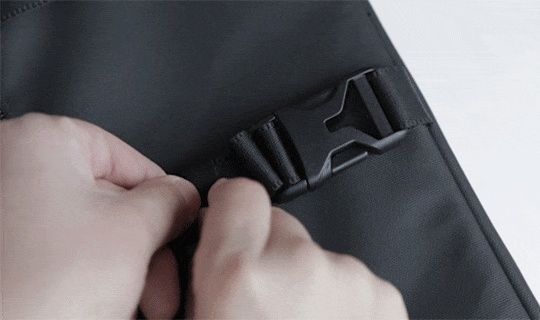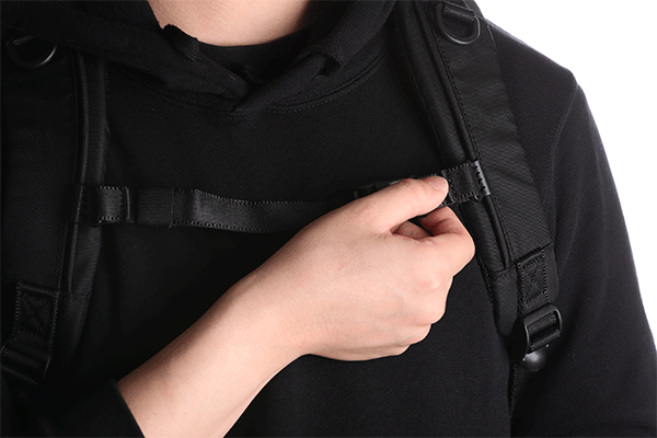 4)チェストベルトでバッグを身体に固定することで、バッグと身体のズレを防いだり、重量を分散させることができます。体型に合わせて調整することができます。