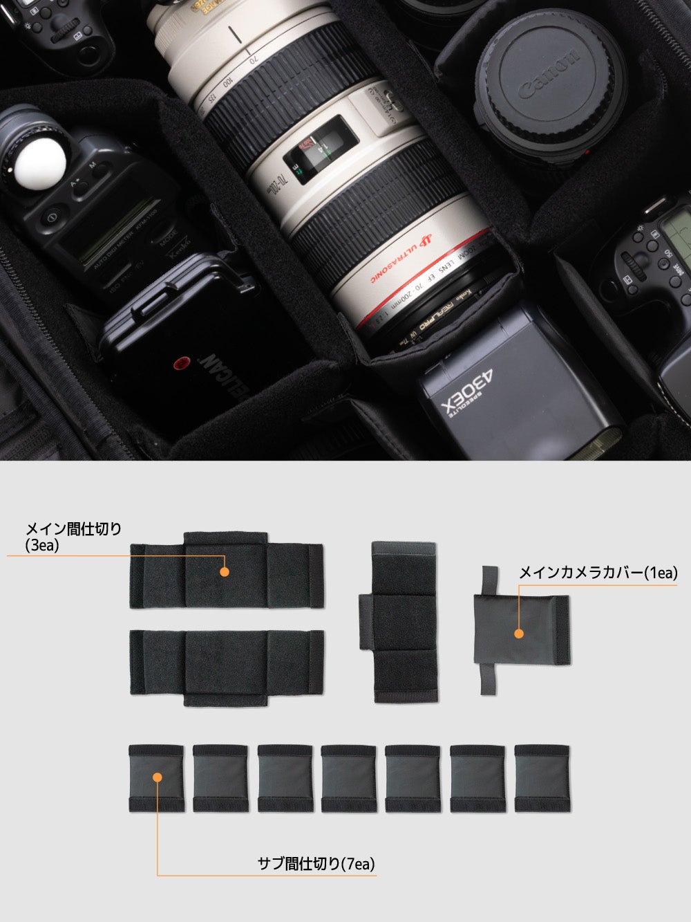2. 11の仕切:11個の間仕切りでどんなカメラ機種も自由にレイアウト!