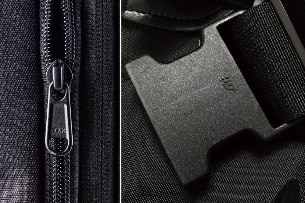 副資材も世界指折りのYKKファスナーとウジンプラスチックバックルを使用して利便性を高めました。